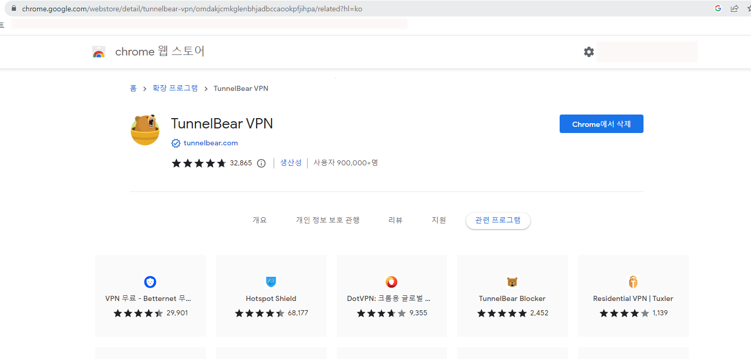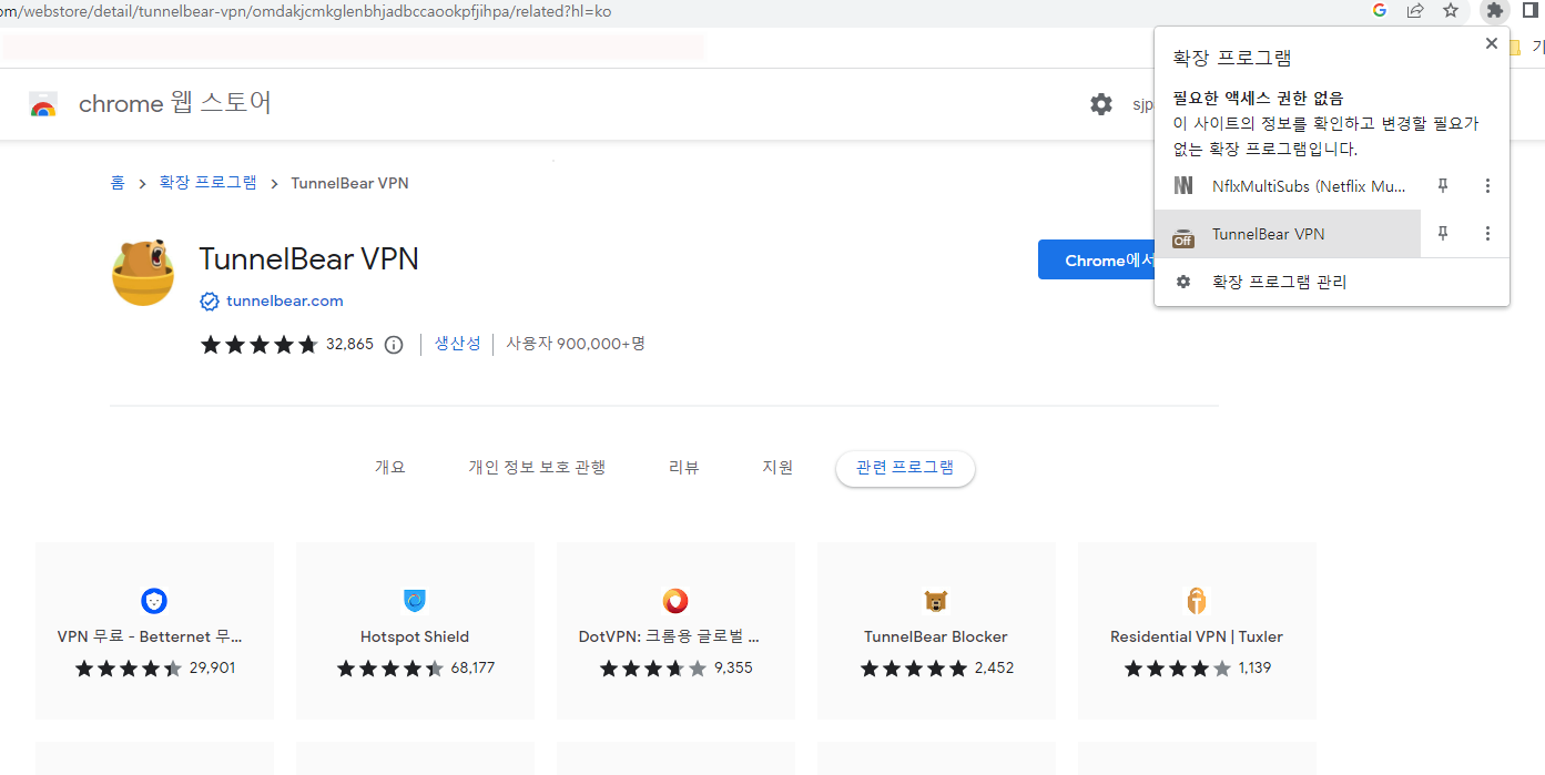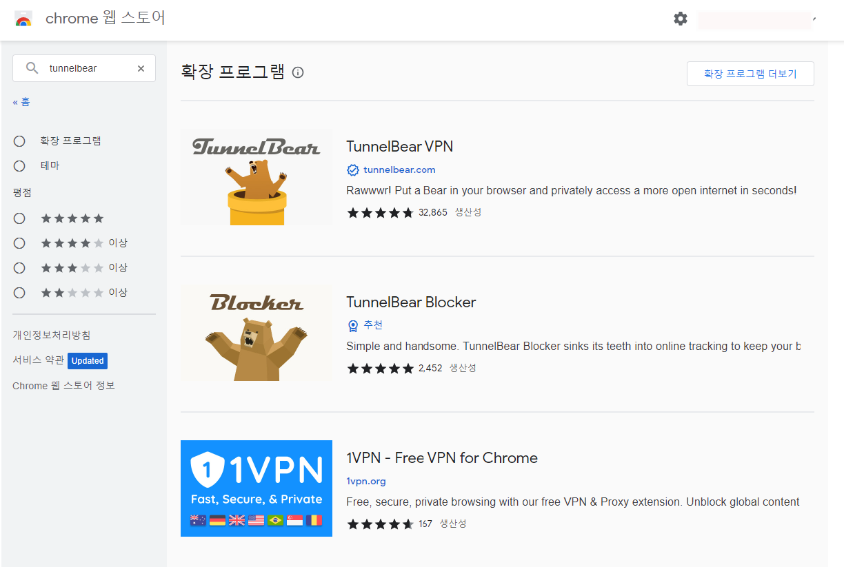 2. 확장 프로그램에서 TUNNEL BEAR를 검색해 주세요.
