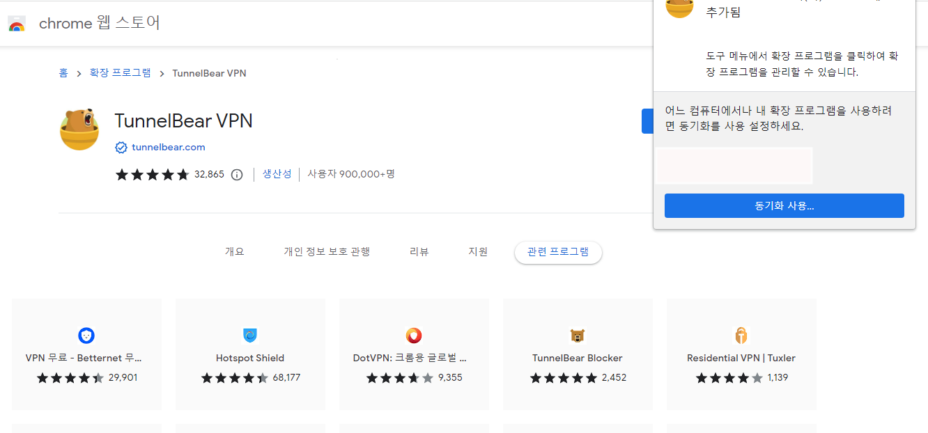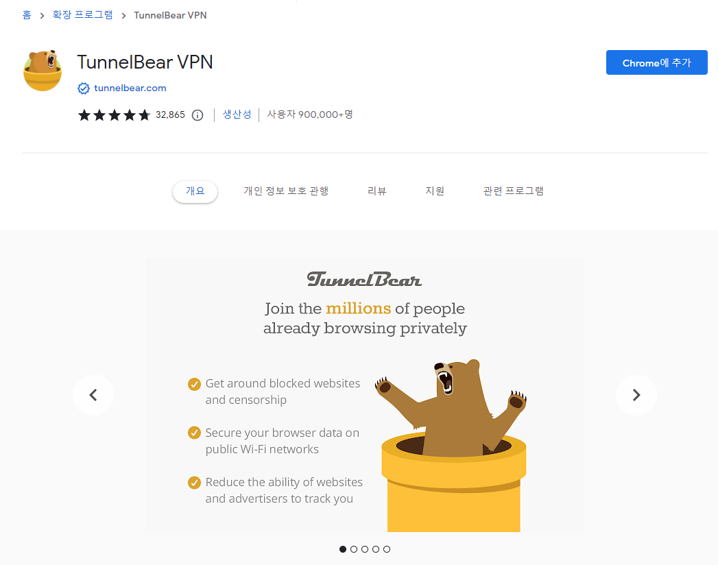 3. TUNNEL BEAR VPN을 크롬에 추가합니다.