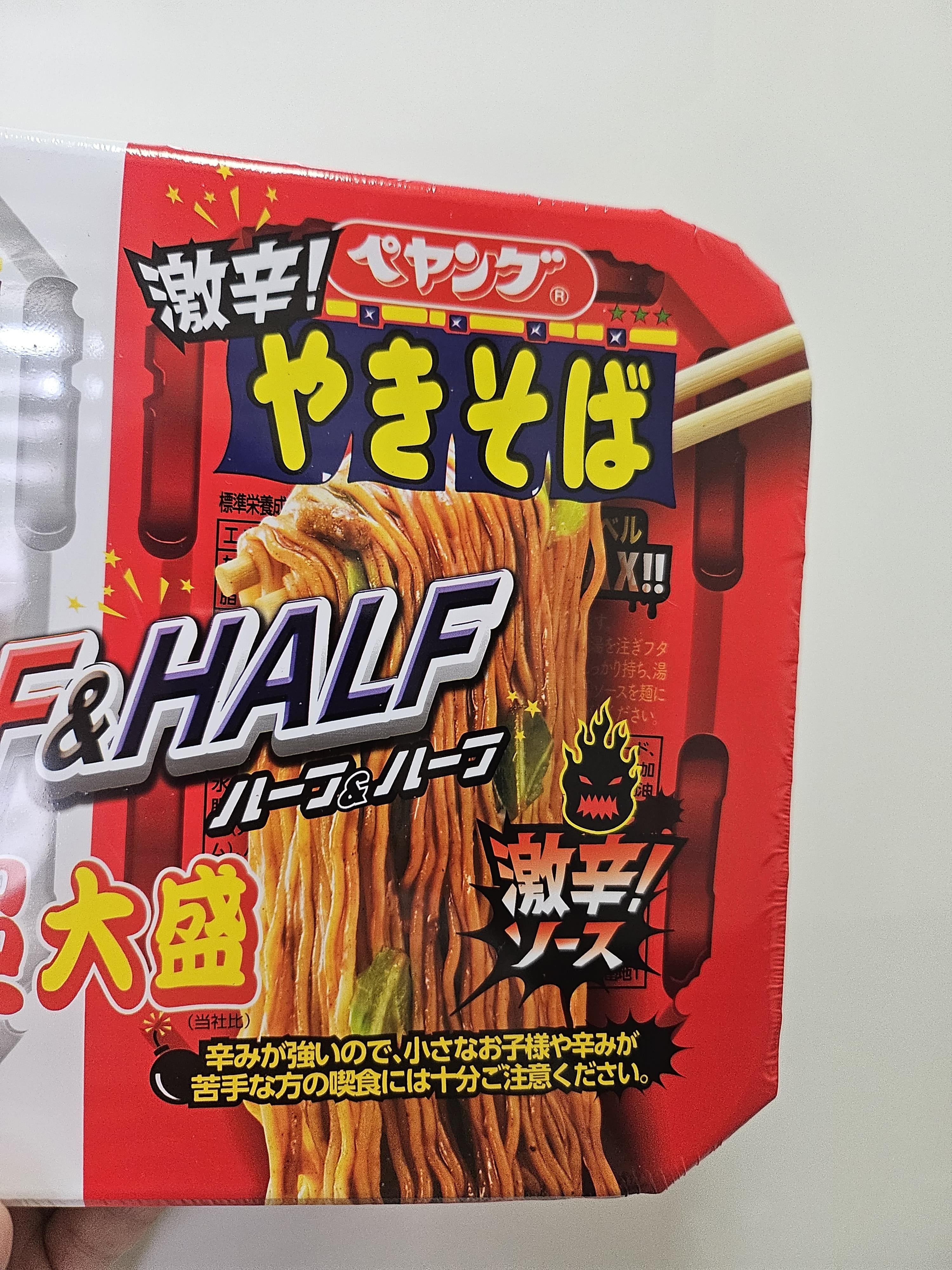 많은 분들이 일본 여행을 하실 텐데, 일본 여행하시면서 이색적인 일본 컵라면을 추천해드리고자 합니다. 페양구 야끼소바인데, 하프 앤 하프로 반반 맛으로 한국의 양념 반, 후라이드 반과 같이 2가지의 맛을 같이 먹을 수 있는 라면입니다. 폐양구 야끼소바 컵라면은 맛도 좋은데, 이렇게 반반 컵라면이 있어서 좋은 것 같습니다.