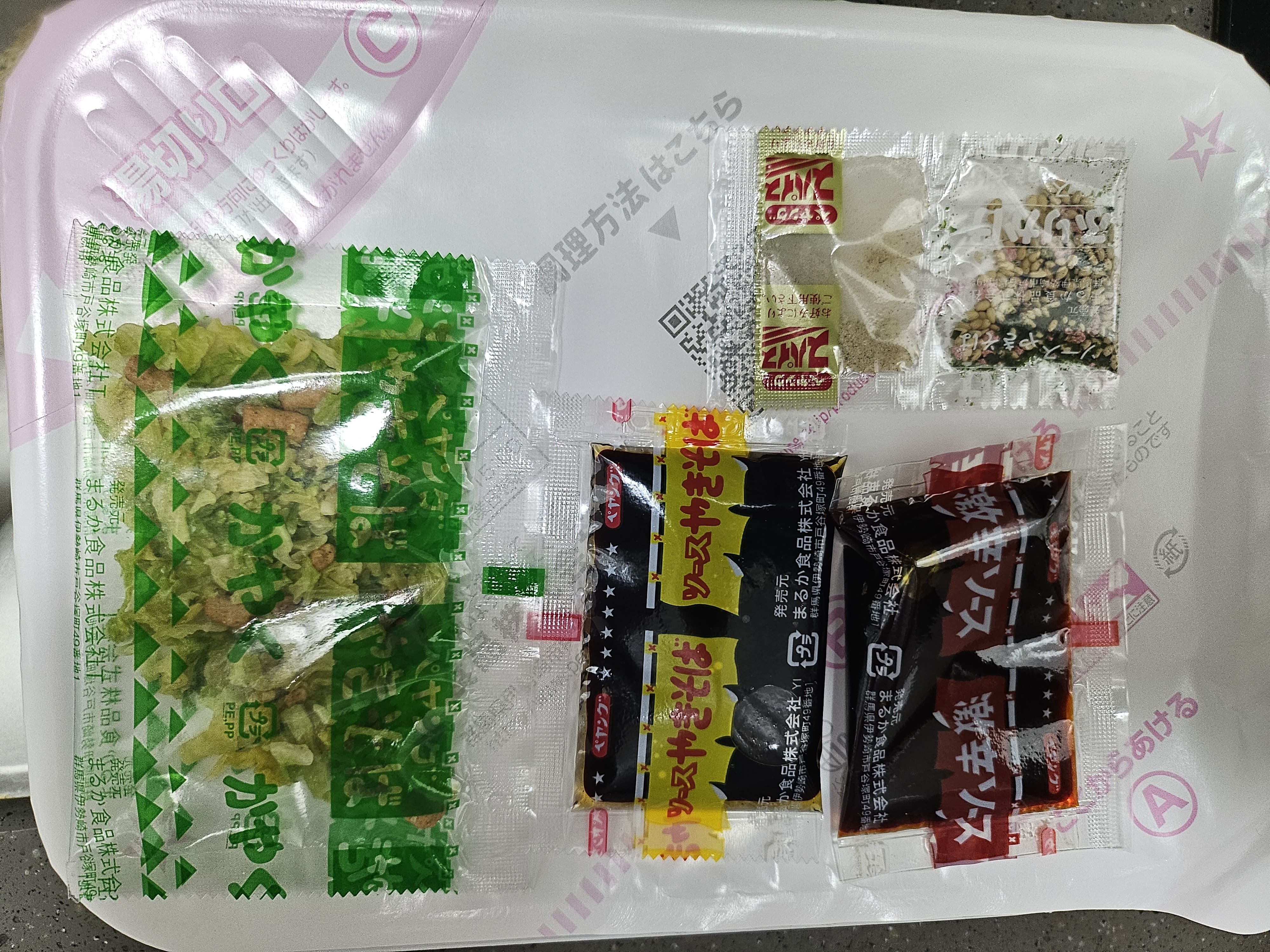 야끼소바 컵라면의 후레이크도 같이 넣어줍니다.