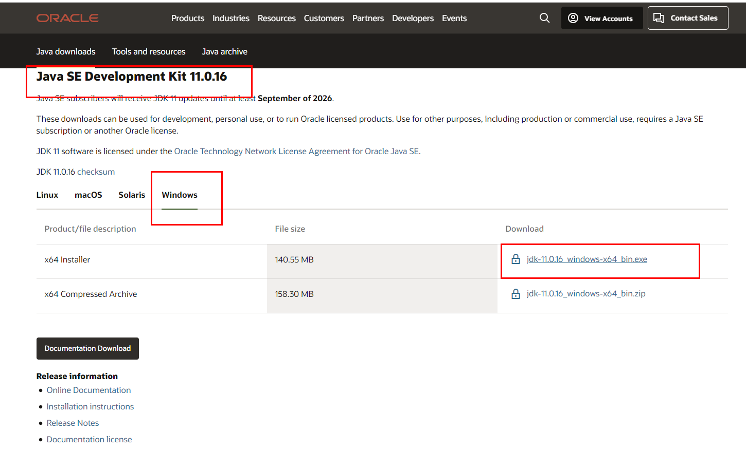 자바 11 version을 설치한다는 가정시, 원하는 버젼의 os에 맞는 설치파일을 다운로드 받습니다.