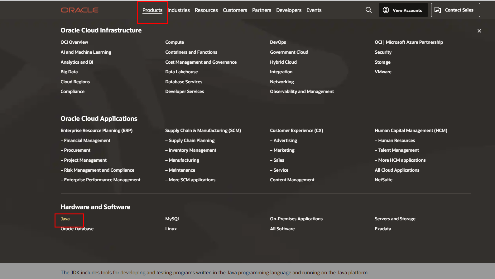 Product > java를 클릭합니다.