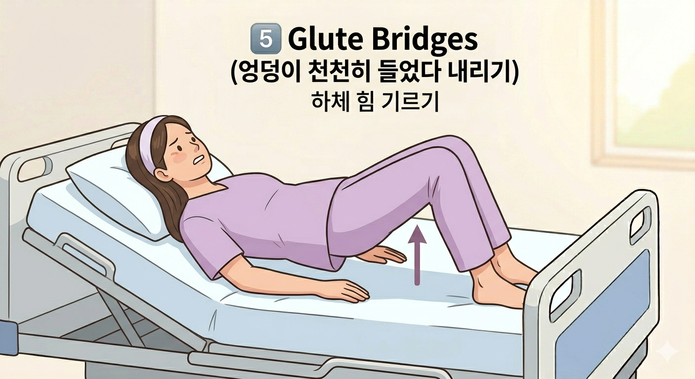 저는 수술 직후부터 감각이 돌아오는 대로 위 동작들을 틈날 때마다 반복했습니다. 그 결과, 둘째 날 아침부터 부종이 눈에 띄게 줄어들었으며, 걱정했던 화장실 가기 미션도 하체 통증 없이 비교적 수월하게 마칠 수 있었습니다.
