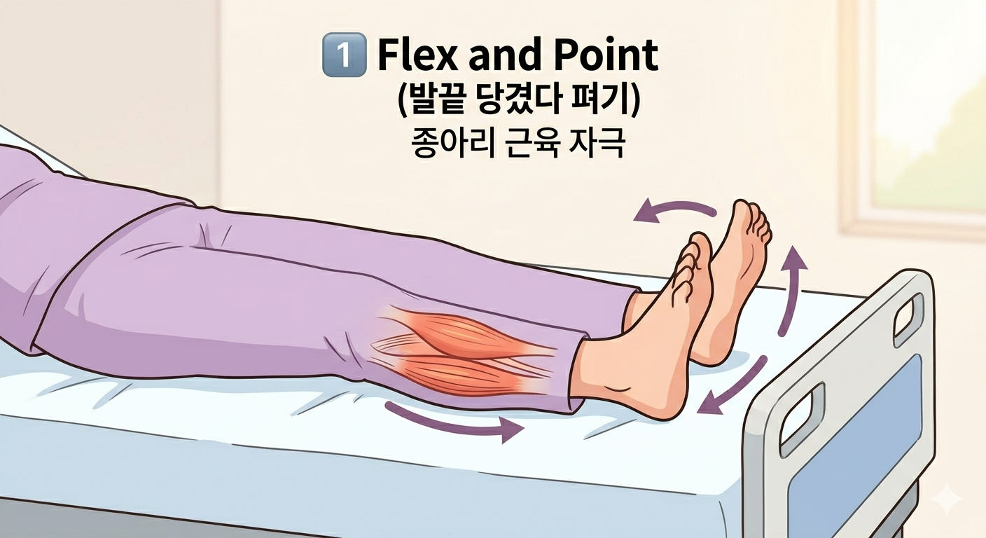 - 1단계: 발끝 당기기 & 펴기 (종아리 펌핑)