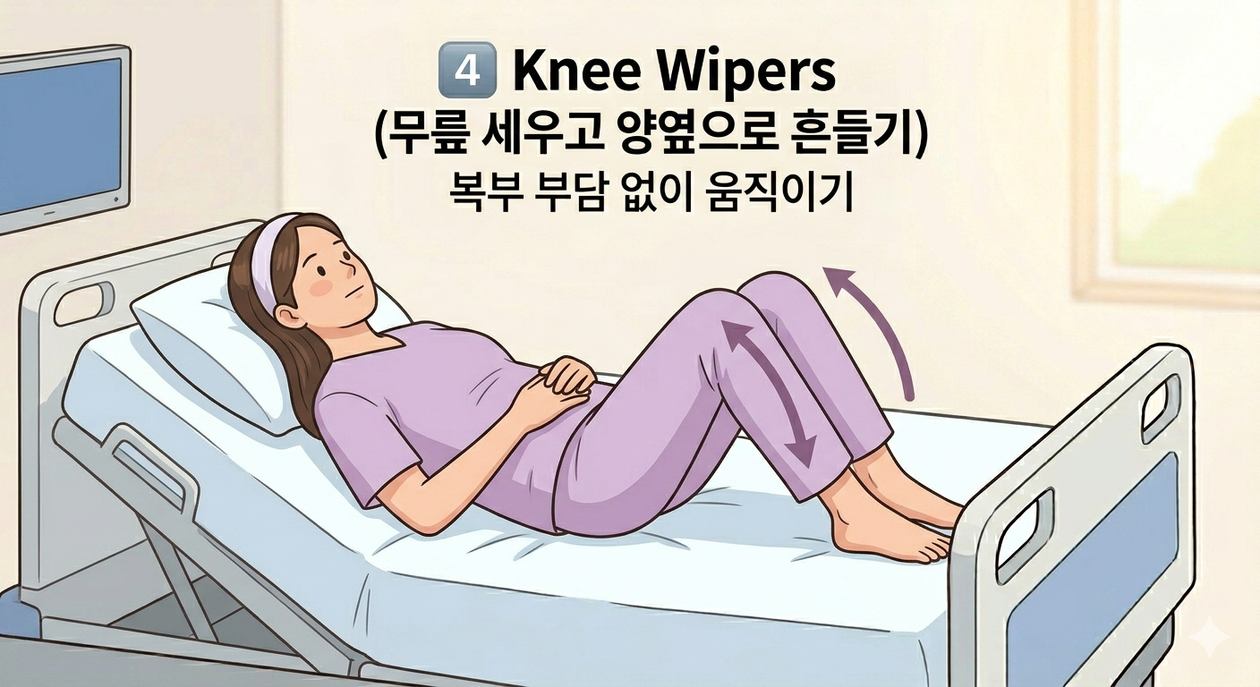 - 4단계: 무릎 세우고 좌우 흔들기 (복부 무리 주의)