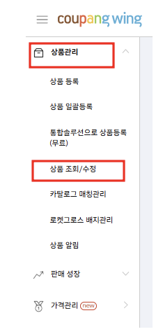 쿠팡 판매자 센터 메인 화면에 접속하여 상품관리 > 상품 조회/수정 메뉴로 가야합니다. 상품 조회/수정 화면에 가면, 그동안 쿠팡에서 판매를 위해 등록한 제품들에 대해서 확인이 가능합니다. 제품들을 모두 확인 후 쿠팡 판매자 센터 탈퇴를 위해선 모든 제품을 삭제해야 합니다.