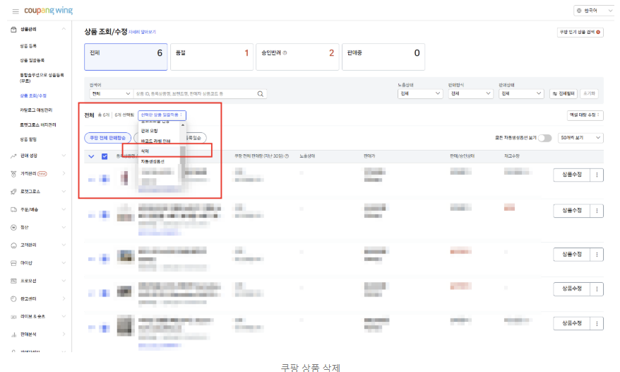 쿠팡 판매자 센터 등록된 모든 상품 삭제하는 방법
