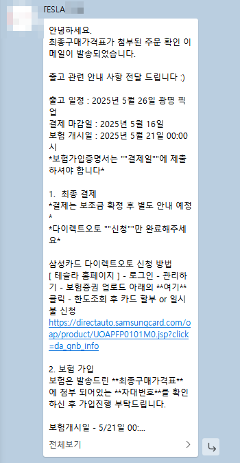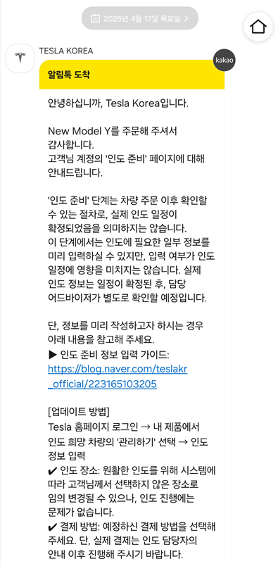 *상기 메시지는 차량 인도 대상자분들에게만 발송되는 메시지입니다.*