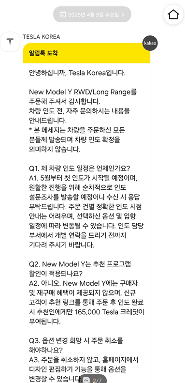 * 본 메세지는 차량을 주문하신 모든 분들께 발송되며 차량 인도 확정을 의미하지 않습니다.