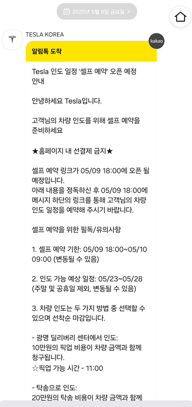 2025년 05월 09일 테슬라 셀프 인도 예약