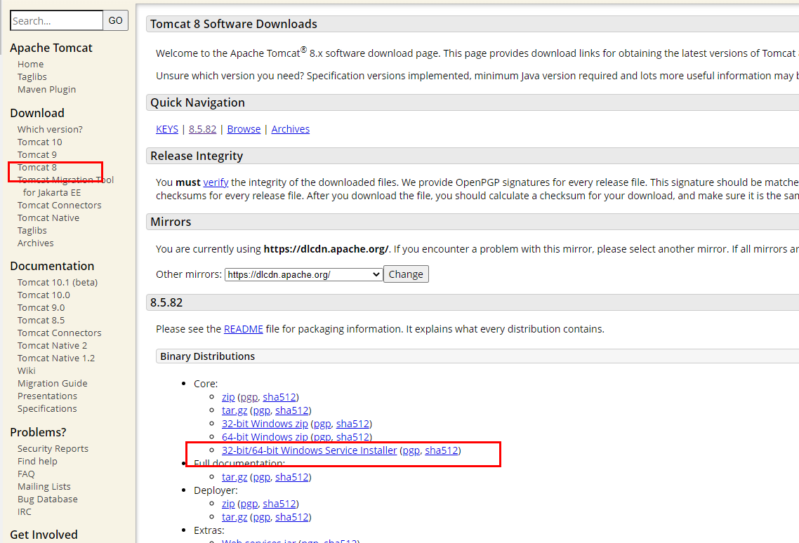 Tomcat의 설치를 위하여, 아래의 사이트로 이동합니다.