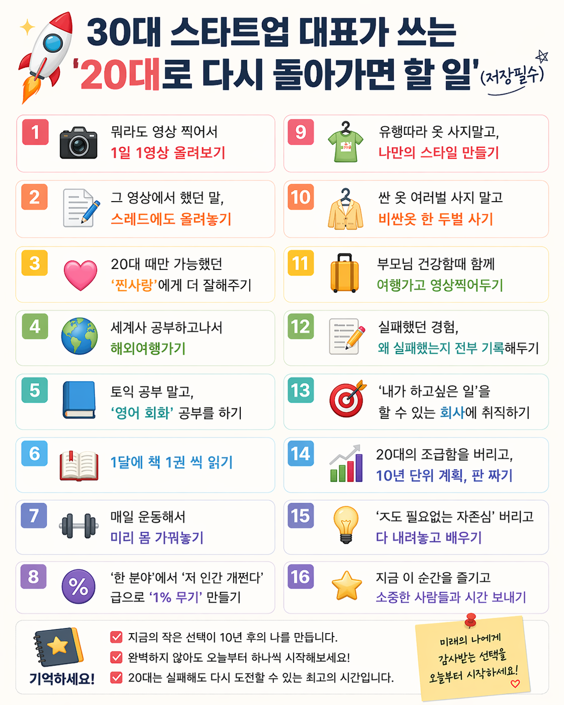 30대가 말하는 20대 인생 조언 (이건 꼭 하세요)