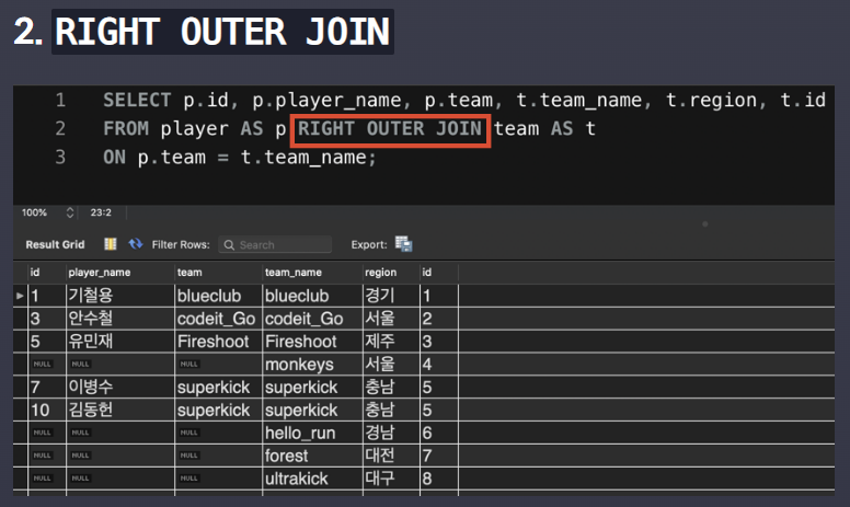 2.RIGHT OUTER JOIN