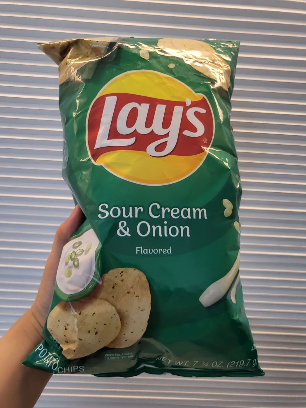 이번에 소개해드릴 제품은 Lay's의 샤워크림 어니언 맛입니다. 국내에서는 찾기가 비록 어려울 수 도 있지만, 해외에서는 쉽게 볼 수 있는 감자칩 과자입니다. 해외여행을 하실 때에도 숙소에서 맥주랑 같이 즐기기 좋은 감자칩으로 양도 엄청 많고 맛있어서 야식으로 먹기에 아주 좋습니다. Lay's는 클래식 감자칩, 물결 모양 감자칩, 향이 첨가된 감자칩 등 종류가 상당히 많습니다. 이번에 소개드리는 레이즈 샤워크림 어니언 맛은 일반 감자칩 스타일이라서 부담 없이 편히 즐길 수 있습니다.